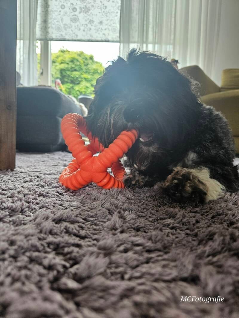 Ze heeft al der tandjes gewisseld en is een heerlijk vrolijk hondje.