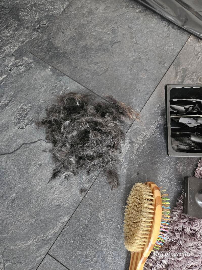Macy nog even getrimd voor ze moet bevallen. Der kontje vrijgemaakt en bij der oogjes en zo. Ja we willen dat alles goed voorbereid is.