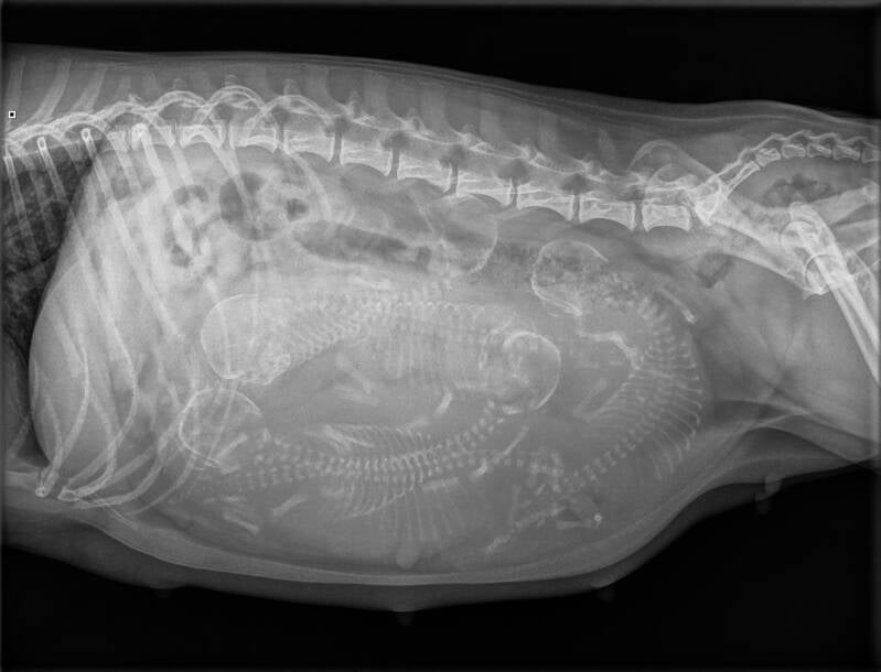 Gisteren is Macy voor haar röntgenfoto weg geweest. We hebben een mooie foto met 5 mooie volgroeide pups er op. Dus Macy wordt moeder van 5 kids. Ze was 2.3 kg aangekomen dus dat is ook al best flink. Het wordt nu echt spannend.